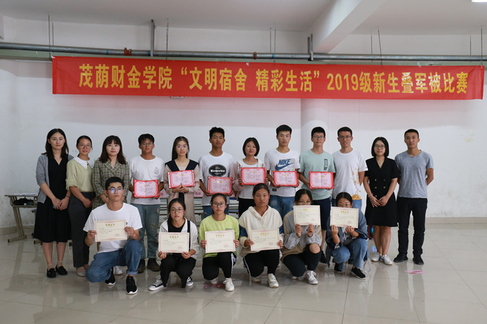 为激励广大同学营造良好的生活环境,养成良好的生活习惯。9月25日,茂荫财金学院在图书馆一楼大厅举办2019级新生叠军被大赛。茂荫财金学院团总支书记梁惠婷、学生秘书李彧佳,专职辅导员胡云芳、姜奥、郑林凤、何玉等老师应邀担任比赛评委。