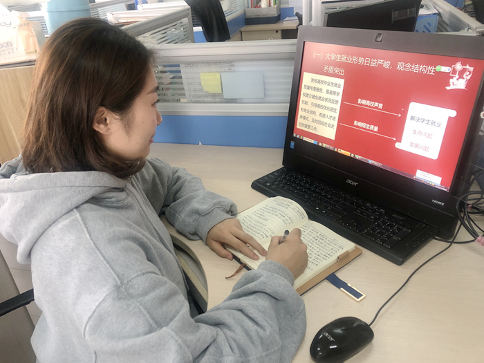 为深入贯彻落实习近平总书记系列重要指示精神和党中央决策部署,统筹推进疫情防控和大学生思想政治教育工作,增强形势下大学生思想政治教育工作的能力和水平,近期,我校组织全体专职辅导员参加全国高校辅导员网络培训示范班学习,为期40天。