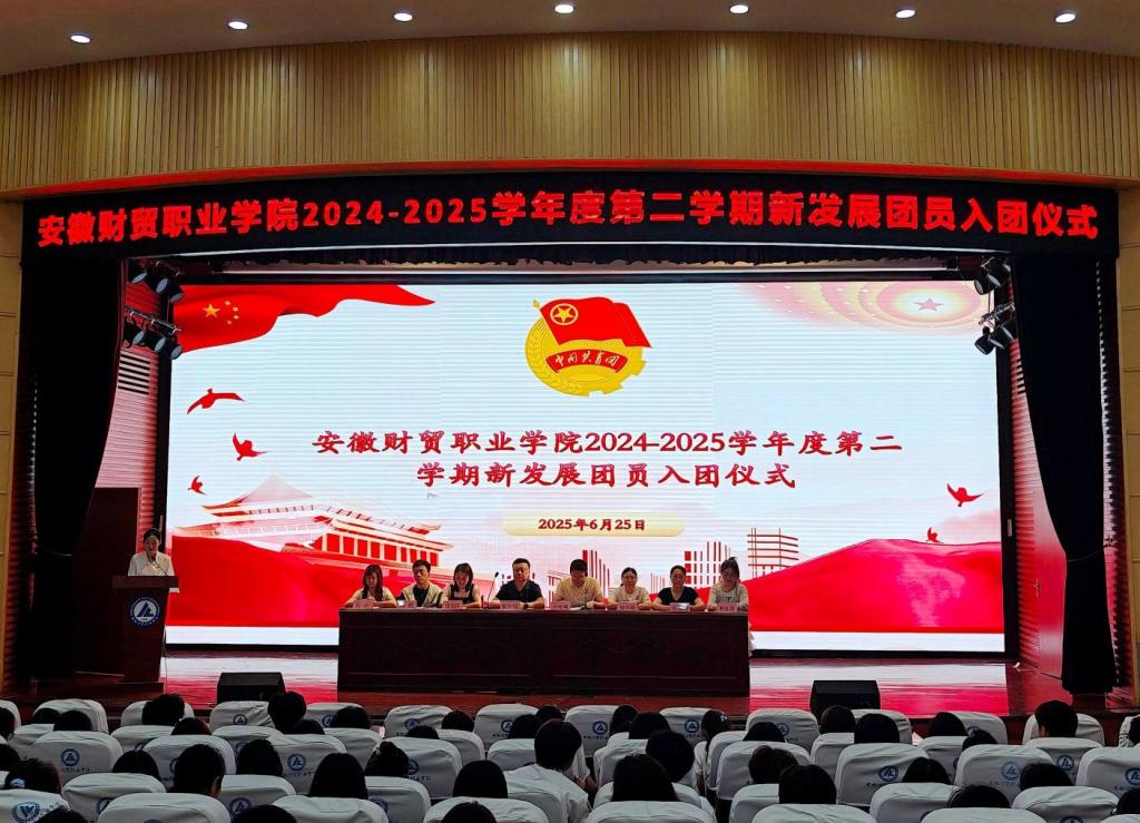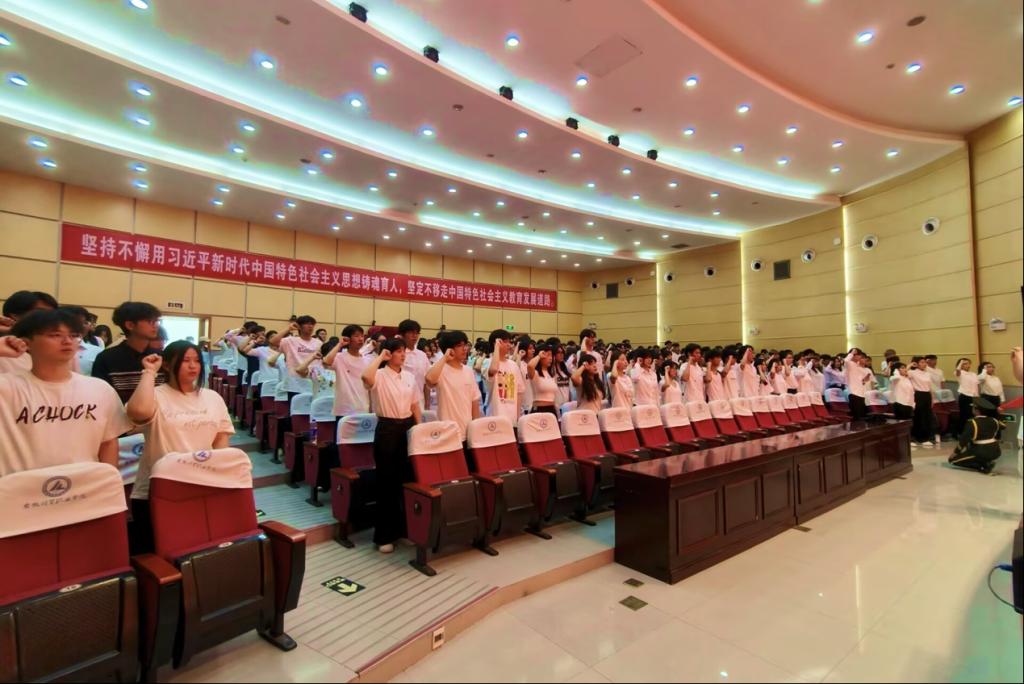 6月25日中午,bat365官方网站在学术报告厅举行新团员入团仪式,旨在深入贯彻习近平总书记关于青年工作的重要思想,加强学校共青团队伍建设。学生处处长廖步岩、团委全体成员、各二级院部团总支书记、团干及团学干部代表等参加活动。