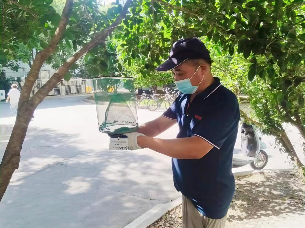 本次消杀工作中,采用“全覆盖、无死角”的作业模式。工作人员背着装满消杀药剂的喷雾器,手持专业设备,对校园内的教室、宿舍、食堂、卫生间、走廊、楼梯扶手等公共区域,以及绿化带、垃圾桶周边、下水道等蚊虫易滋生的重点部位,进行了细致入微的喷洒消毒。此外,消杀工作人员还对校园内所有灭鼠毒饵站鼠药进行更换,灭蝇、灭蚊笼投放诱饵,从而降低校园内病媒生物密度。