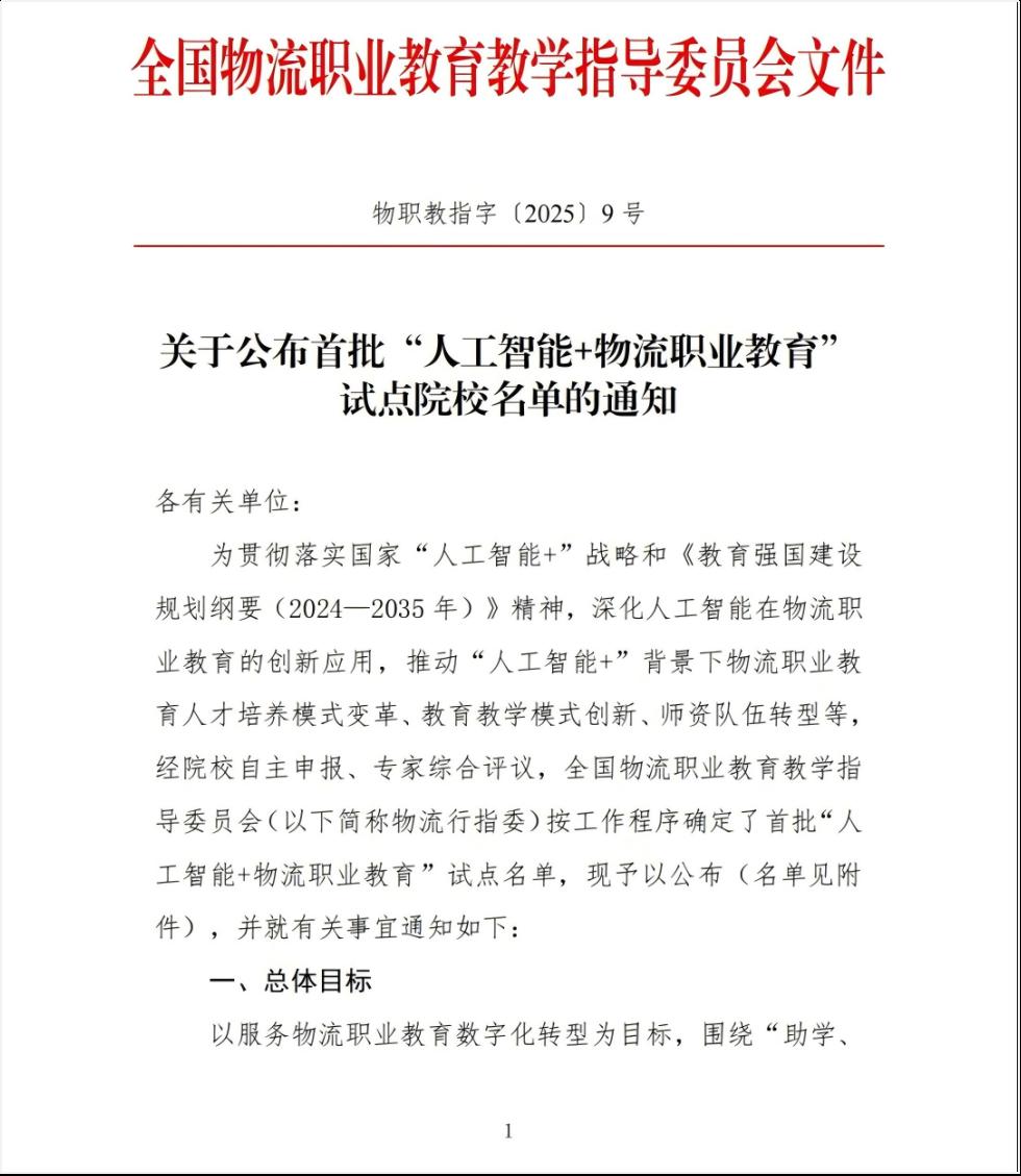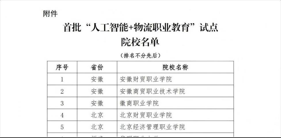 近日,全国物流职业教育教学指导委员会公布首批“人工智能+物流职业教育”试点单位名单。学校凭借现代物流管理专业在产教融合及人工智能应用领域的突出成果,成功跻身首批试点院校行列。