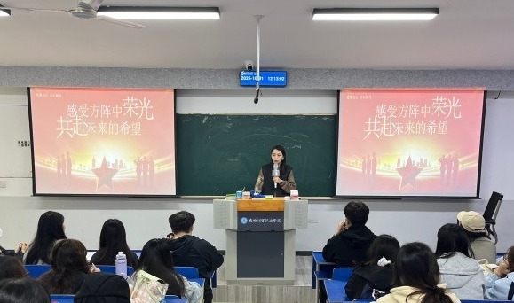 团课以爱国主义教育为主线,以九三阅兵为切入点,围绕“感受方阵里的荣光”“追寻征程里的担当”“传承先辈们的志向”“奔赴未来中的希望”四个篇章展开,系统阐述了新时代青年所应肩负的责任与使命。沈丽萍结合大学生暑期“三下乡”社会实践中的生动案例,深入浅出地阐释了“何为青年青年何为”的时代命题,展现了当代大学生在实践之中践行爱国精神、书写青春篇章的动人画面。