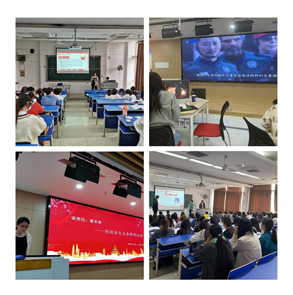 重温党史,邓小平关于“社会主义本质”的论断彪炳史册,展望未来,习近平新时代中国特色社会主义思想实现社会主义本质论的新发展。为抓好新时代大学生党史学习教育,着力讲好党的故事、革命的故事、英雄的故事,厚植爱党、爱国、爱社会主义的真情实感,让红色基因和革命薪火代代传承,近日,马克思主义学院思政理论课全体专兼职教师,立足“毛泽东思想和中国特色社会主义理论体系概论”课程内容,依托课堂教学组织开展“说变化,看未来——对社会主义本质的认识”专题学习活动,将党史学习教育有机地融入课堂,引领广大学生明晰社会主义本质,深入学习领会马克思主义中国化的重要成果。