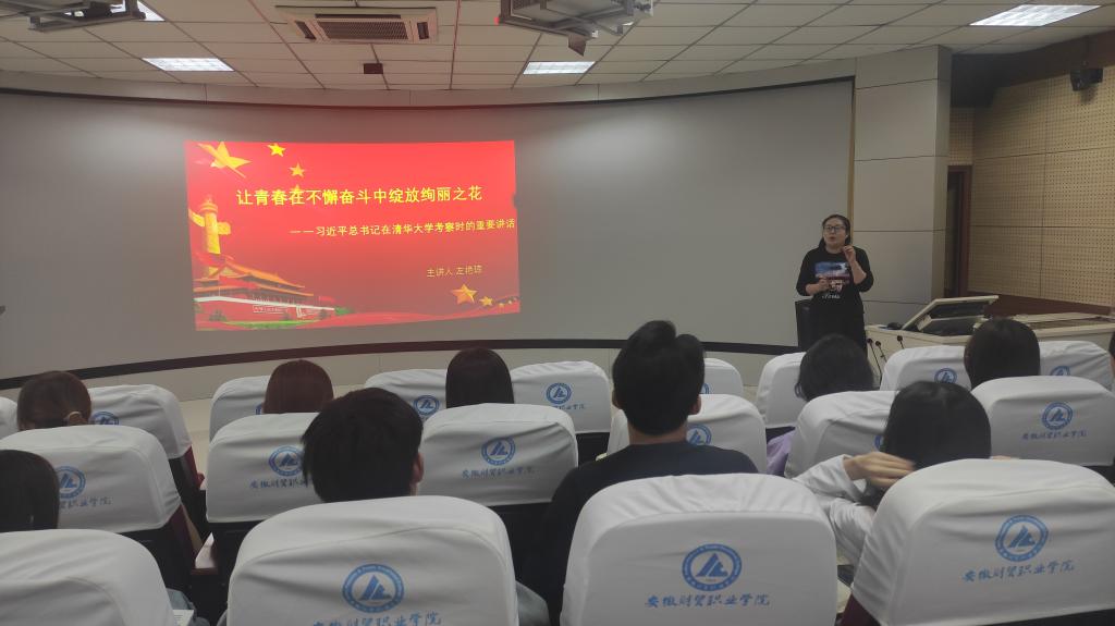 左艳琼以“让青春在不懈奋斗中绽放绚丽之花”为题,为全体团学干部上了一堂生动的团课,以此带领广大团学干部深入学习贯彻习近平总书记考察清华大学时的重要讲话精神。左艳琼表示,新时期的青年一代应是有理想、有本领、有担当的一代,我们应向先进人物和身边的榜样学习,用自己的行动展现出勇敢、担当、坚强的新时代青年形象。随后,左艳琼结合实际,向在座团学干部讲述了新时代弘扬爱国主义的重要意义以及青年团员应该如何践行、弘扬爱国主义精神。
