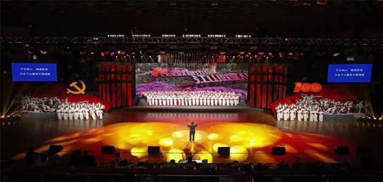 百年征程波澜壮阔,百年初心历久弥新。为庆祝中国共产党成立100周年,激发广大青年爱党爱国爱社会主义热情,充分展示安徽人民积极向上、紧跟党走的良好精神风貌,6月25日晚7时30分,省直属机关工作委员会在省体育馆举行主办“永远跟党走”庆祝中国共产党成立100周年歌咏大会。全省61家单位参加演绎,我校工会选派师生100余人代表学校参加演出,张琼老师领唱《我宣誓》。