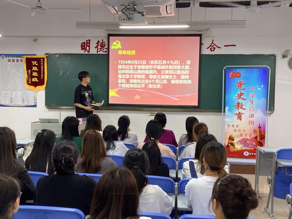 为深入学习习近平总书记在党史学习教育动员大会上重要讲话精神,积极引导同学们学习中国共产党党史,在中国共产党成立100周年的重要历史时刻,财会金融学院成立了由学生党员、发展对象、入党积极分子及团学干部等15名成员组成的大学生党史学习教育宣讲团,5月24至30日晚,宣讲团走进基层团支部开展为期一周共计15场的宣讲活动。