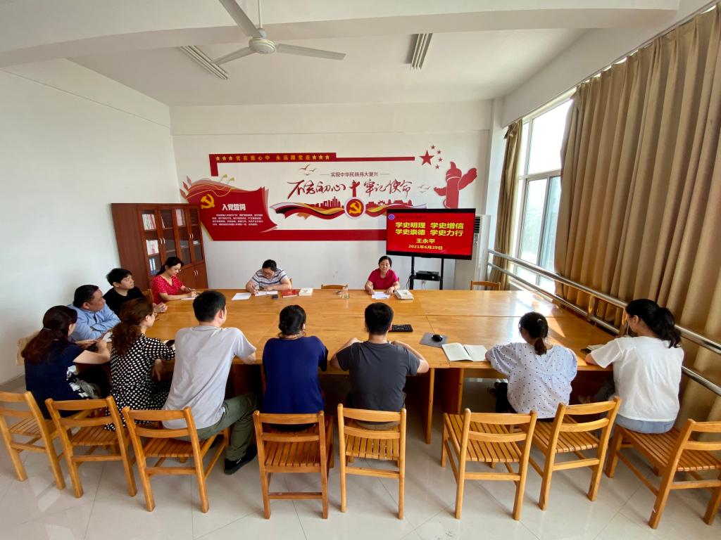 王永平表示,了解党、更爱党,回头看走过的路,走好脚下的路,远眺前行的路。学习党史对我们来说意义深远,让我们认识到只有认清从哪儿来、到哪儿去才能把很多的问题看的深、把的准。学习党史,需深刻体会、用心思考、入眼入耳、入脑入心。牢记党的理想信念,牢记党的历史经验。我们要学好党史这一本严肃的“教科书”,砥砺前行,为学校建设添砖加瓦。