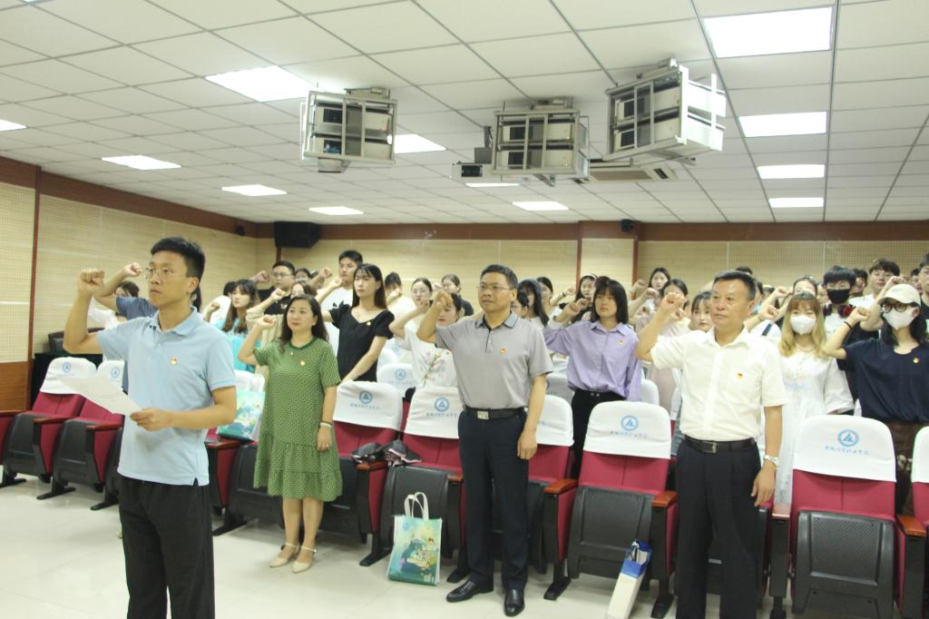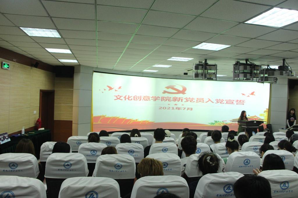 7月10日中午,文化创意学院在3D实训室,面向学院2021届毕业生党员开展“大学的最后一堂党课”活动,组织学院54位新入党的预备党员进行宣誓,并组织学院全体学生党员重温入党誓词。文化创意学院党总支书记张克、院长郭湘如、党总支副书记宋凌云出席会议。