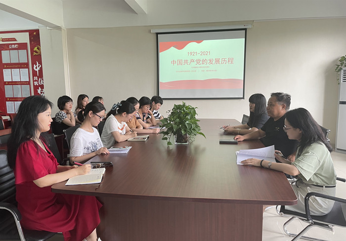 教师第一党支部书记李麟作题为《1921-2021中国共产党发展历程》专题党课,党课从中共党史发展脉络及学习意义、新民主主义革命时期、社会主义革命和建设时期、改革开放和社会主义现代化建设新时期、走进新时代迈向新征程等五个方面,全面梳理了党史发展的脉络,描述了党史各阶段重大历史事件和重要党史人物,憧憬了走进新时代、迈向新征程的宏伟蓝图。