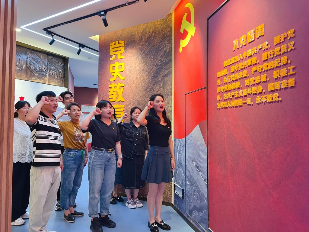 6月30日下午,办公室党支部赴学校马克思主义学院爱国主义教育基地开展6月主题党日活动。