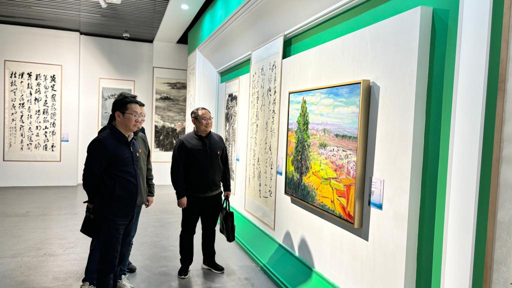 展览现场,党员们被一幅幅栩栩如生的画作和一笔笔流畅的书法所吸引,用心感受每幅字画的意境和内涵。这些作品以独特的视角和深情的笔触,描绘了安徽乡村的山水、田园、人物和生活,展现了乡村的宁静、和谐与美丽。同时,也展示了安徽人民对家乡的深深热爱和对美好生活的向往。