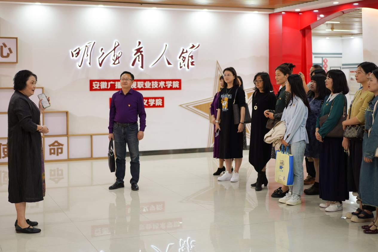 安徽广播影视职业技术学院马克思主义学院院长徐雯及教师代表对我院的到访表示热烈欢迎,并带领教师参观了明德育人馆。详细介绍了馆内中国特色社会主义文化厅中的革命文化厅、中华优秀传统文化厅和社会主义先进文化厅,全体党员教师在虚拟仿真实践教学馆现场体验3D全景视频教学。老师们还驻足馆内二期党建厅中,聚焦中国道路,从早期探索、革命洪流、星火燎原、浴血奋战、建国大业、继往开来、不忘初心等七个板块展示中国共产党成立以来围绕实现中华民族伟大复兴的中国梦而进行的中国道路探索与实践。