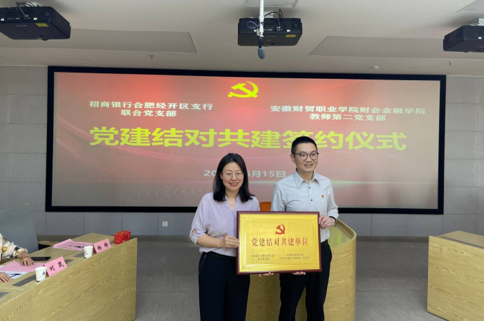 5月15日下午,财会金融学院教师第二党支部与招商银行合肥市经开区支行联合党支部开展党建结对共建签约暨主题党日活动。财会金融学院党总支书记胡宏萱、副院长孙敬平、教师第二党支部书记查静,招商银行合肥市经开区支行联合党支部书记田睿、副书记刘朝辉及双方党支部全体党员参加活动。