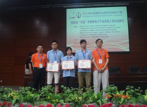 6月23至27日,2014年全国职业院校技能大赛高职组“智能电子产品系统工程实施”赛项在天津现代职业技术学院举行,有来自全国48支代表队共144名选手参加了比赛。我院新能应用技术专业能源1201班汪金秀和曾义松、应用电子技术专业高职1005班的谢先松3位同学团结协作,奋力拼搏,以团体第18名的总成绩获得三等奖。