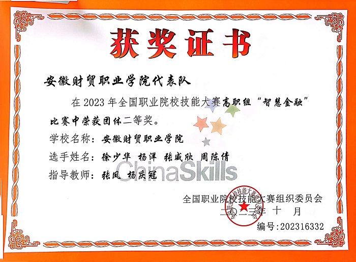 学校荣获2023年全国职业院校技能大赛智慧金融赛项团体二等奖