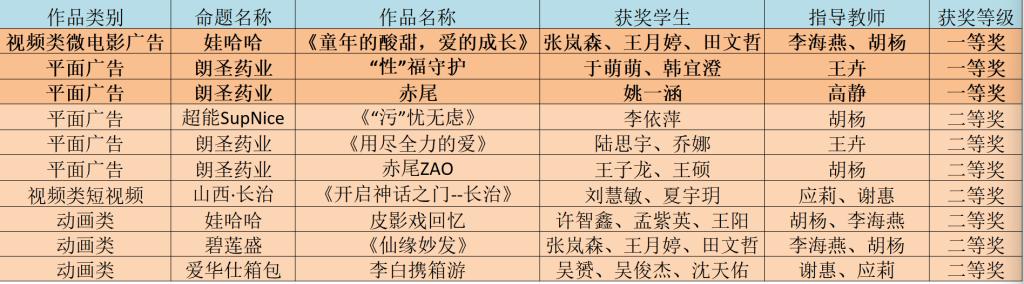展望未来,艺术设计专业群将继续以各类赛事为重要平台,牢牢把握立德树人根本任务,以提升教学质量和培养人才为核心使命,深入推动“以赛促学、以赛促教、以赛促改、以赛促研”的实践教学改革,全面提升学生的创新意识和问题解决能力,激发创意潜能,培养更多适应新时代需求的优秀广告设计人才。(供稿:左中玥  胡杨 审稿:江友农)