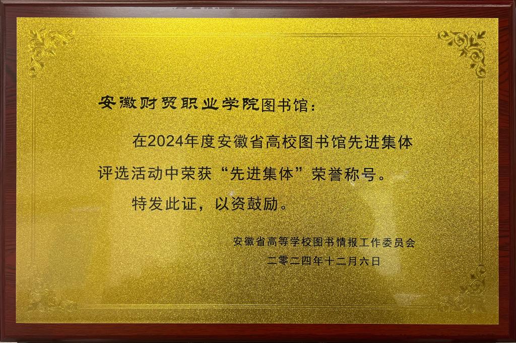12月6日,2024年安徽省高校图书馆馆长年会暨第五届安徽省高校图书馆服务创新案例大赛决赛在芜湖市隆重召开,学校图书馆从全省125所高校馆中脱颖而出,喜获“安徽省高校图书馆2024年度先进集体”荣誉称号。