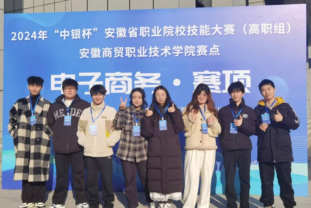 1月11日,2024年安徽省职业院校技能大赛(高职组)电子商务赛项在安徽商贸职业技术学院举行。由我校吴晓萍、陈小芳老师指导的周若恒、方谦武、聂盟杰、刘冰洁团队荣获一等奖,潘逸飞、郑智宇、王怀瑞、吴家顺团队荣获三等奖。