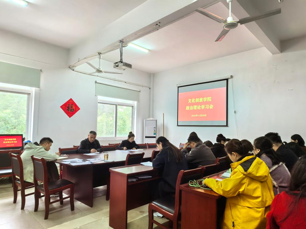 11月20日下午,文化创意学院在综合楼210党员活动室召开政治理论学习会,全体教职工参会。