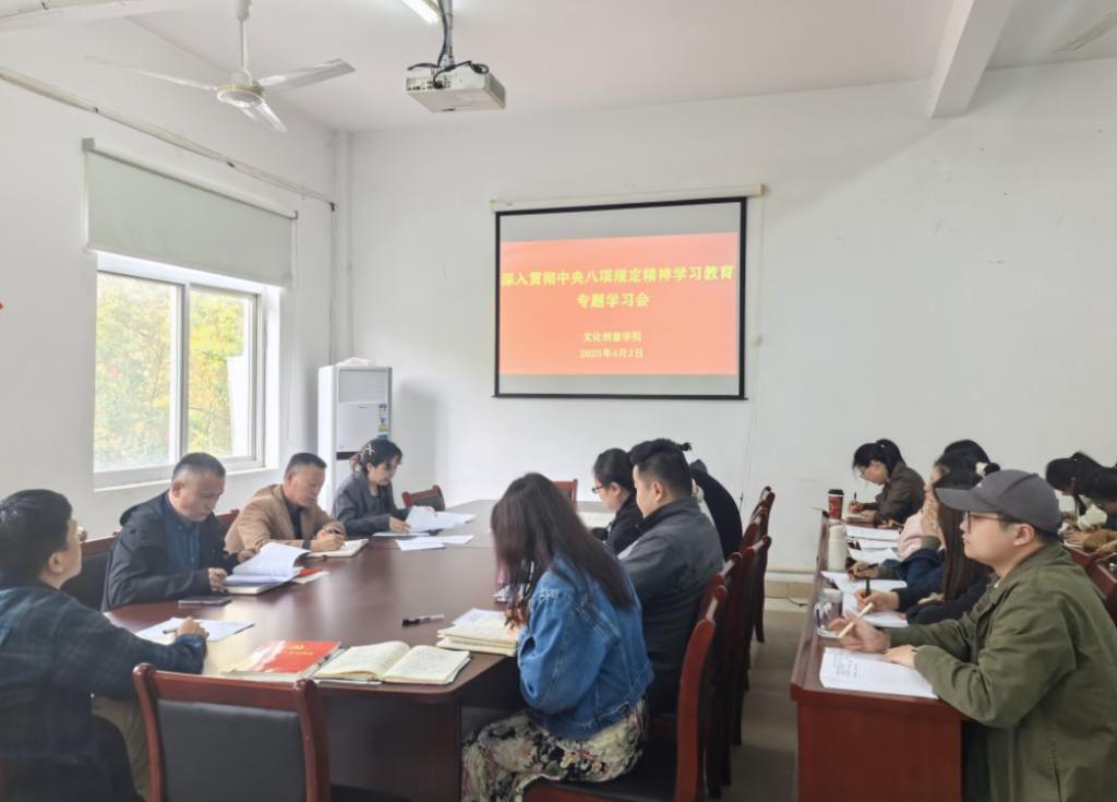4月2日下午,文化创意学院召开深入贯彻中央八项规定精神学习教育专题学习会,会议由党总支副书记倪晶晶主持,全体教职工参会。