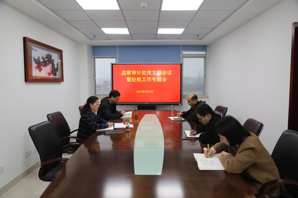 4月3日上午,监察审计处在行政楼916会议室召开党支部会议暨纪检工作专题会,会议由党支部书记王良斌主持,学校党委委员、纪委书记罗虹以普通党员身份参加。
