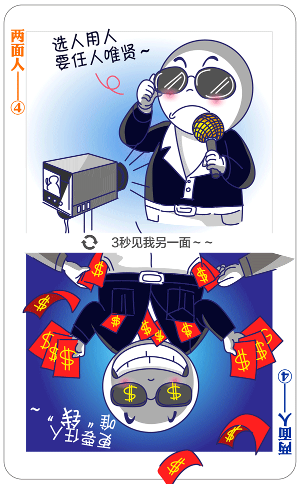 习近平总书记多次强调:“坚决反对搞两面派、做两面人。”大量案件表明,党内有一些人在这方面问题很突出。我们要给政治上蜕变的两面人画个像,摆摆他们的一些表现。今天推出第四期:有的张口“廉洁”、闭口“清正”,私底下却疯狂敛财。