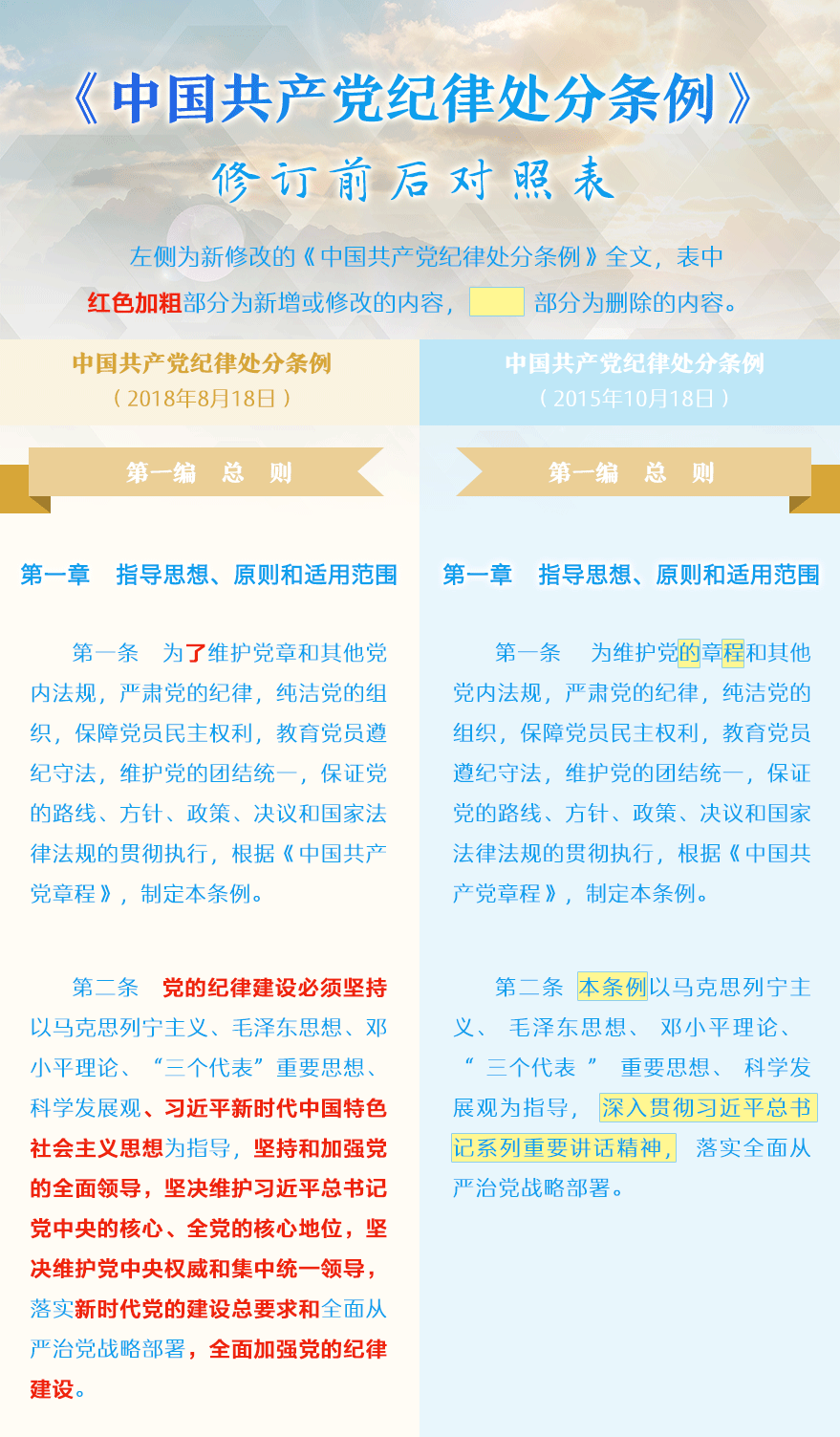 《中国共产党纪律处分条例》修订前后对照表