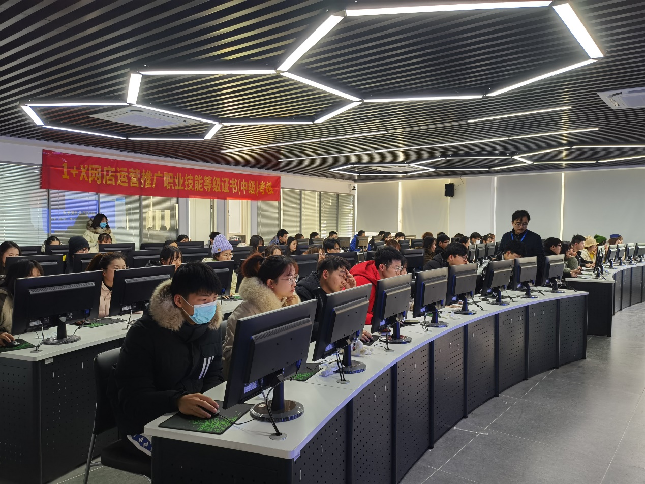 为贯彻落实《国家职业教育改革实施方案》中1+X证书制度试点工作的要求,加快推进我校课证融通教学改革实践,根据教育部1+X证书试点工作安排,1月9日,经济贸易学院网店运营推广(中级)职业技能等级证书考试在第二实训楼903进行,经济贸易学院电子商务专业66名学生参加了此次考试。