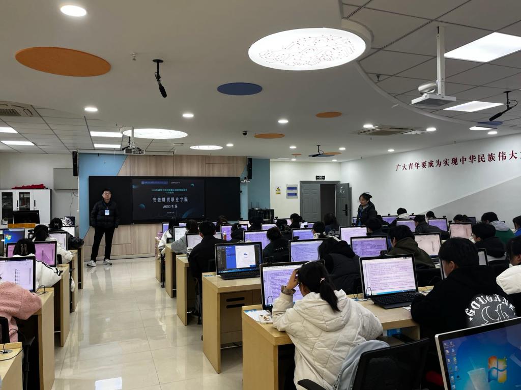 12月3日上午,建筑工程识图1+X职业技能等级证书在我校考点开考,经济贸易学院工程造价专业45名同学参加了此次考试。本次考试时间紧,任务重,专业教师积极沟通、相互配合,顺利完成了培训和考试。