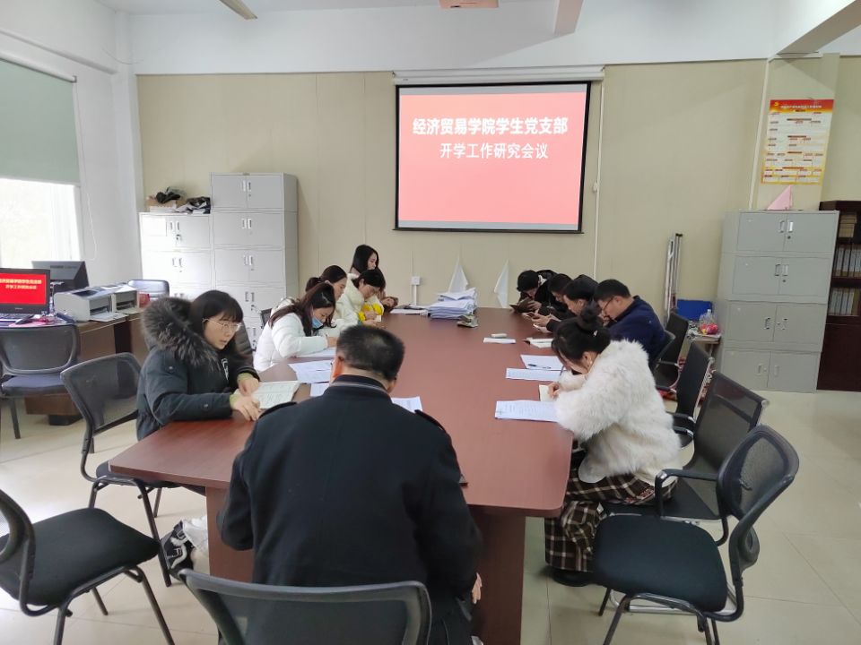 为全面做好新学期学生工作,确保各项工作顺利开展,2月14日下午,经济贸易学院召开全体专职辅导员工作会议。会议由经济贸易学院党支部副书记丁蓉主持,陶云龙书记、学生秘书和全体专职辅导员参加会议。