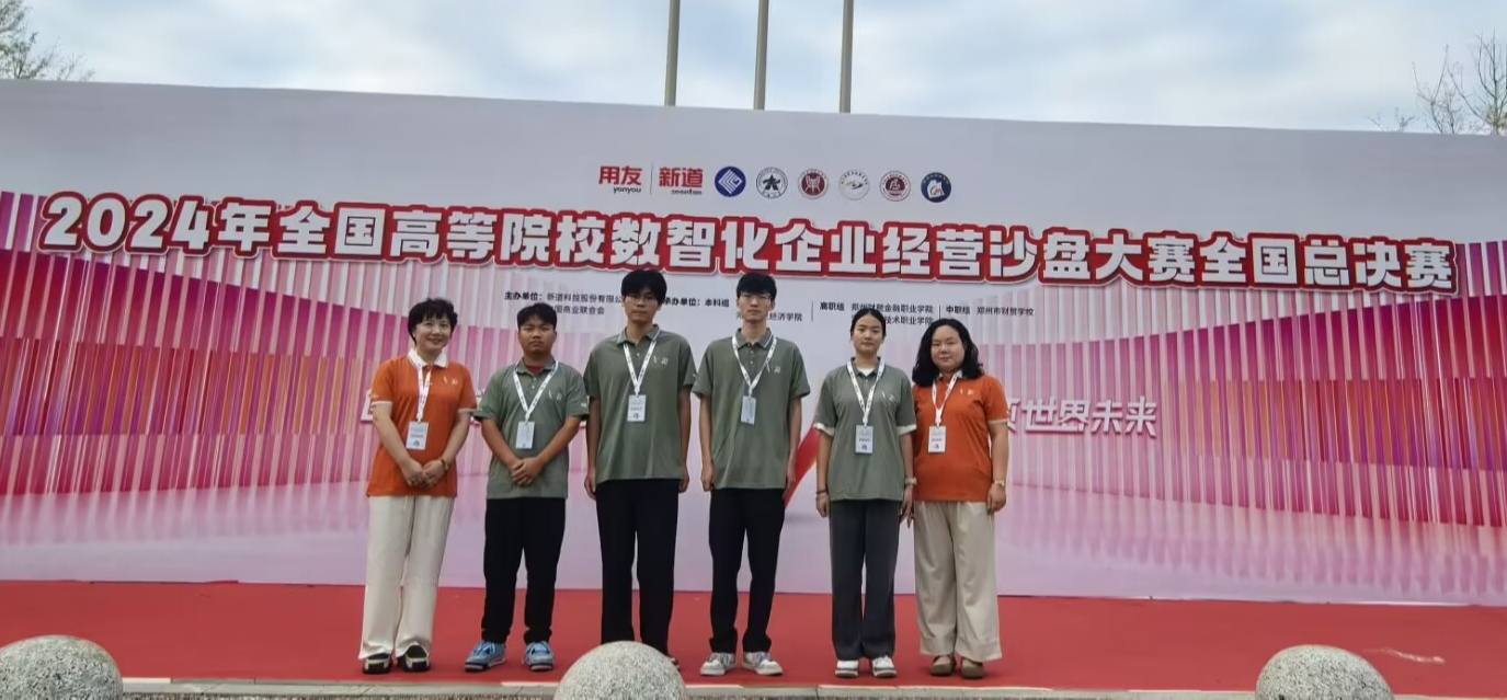 9月21日,由中国商业联合会、新道科技股份有限公司主办的2024年全国高等院校数智化企业经营沙盘大赛全国总决赛在郑州举办。由我校夏媛媛、杨冰两位老师指导,经济贸易学院赵宏伟、魏兴诚、徐佳龙、候迎杰四位同学组成的参赛队,经过激烈角逐,荣获高职组国赛一等奖。