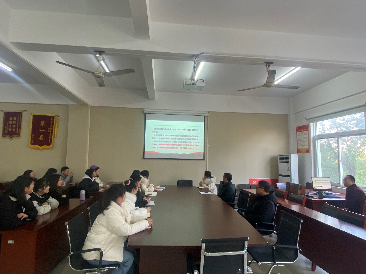 陶云龙全面系统解读了党的十九届六中全会精神,指出党的十九届六中全会是在我们党成立100周年的重要历史时刻、“两个一百年”交汇的重大历史关头召开的一次重要会议,具有重要的历史意义。学习宣传贯彻好党的十九届六中全会精神,是当前和今后一个时期的重大政治任务。黄诗义院长结合学院建设情况,提出要准确把握党的十九届六中全会精神、省第十一次党代会精神对职业教育发展的重要启示,大力弘扬伟大建党精神,深刻把握党的十九届六中全会和省第十一次党代会的重要内容,不断总结时代变革所积累的经验,推动学习宣传贯彻大会精神在学院落地生根。