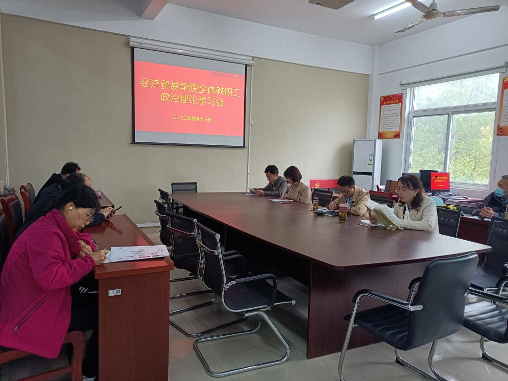 4月13日下午,经济贸易学院召开政治理论学习会议,会议在学院党总支的安排下,由教师第一党支部书记朱清主持,全体教职工参会。