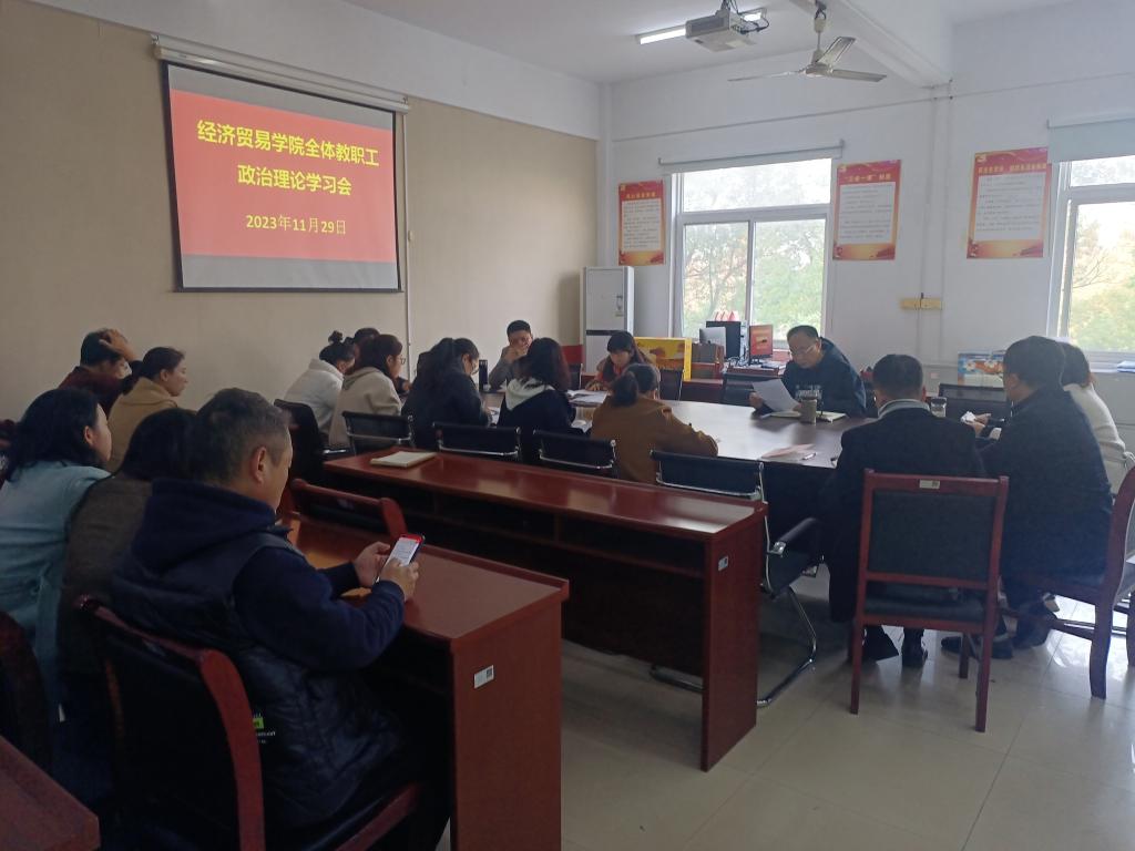 11月29日,经济贸易学院党总支召开政治学习会议,陶云龙书记主持,经济贸易学院全体老师参加会议。