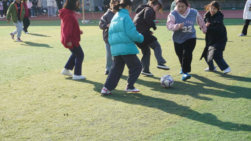 随着比赛进入白热化,紧张的氛围开始在全场蔓延。尽管体力逐渐不支,却没有一人轻言放弃,营销2203班全体参赛学生们彼此支撑、愈战愈勇,用青春的汗水和热情唤醒了冬日里的绿茵,为青春留下了崭新的注脚。汗水打湿了他们的后背,阳光轻抚着他们的脸庞,没有人后退,只有默契的向前。