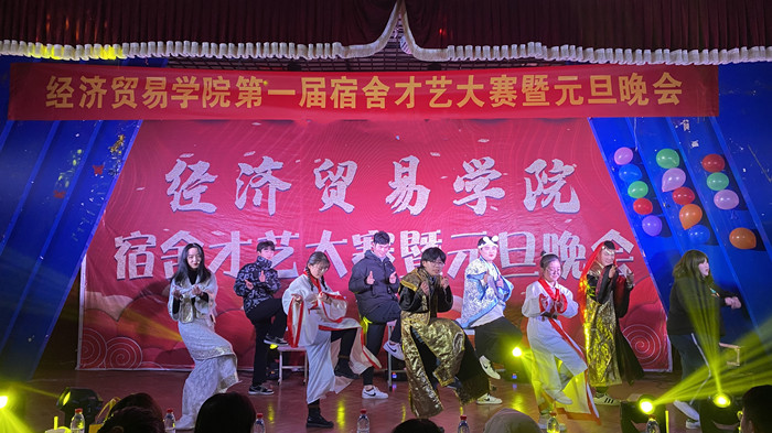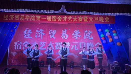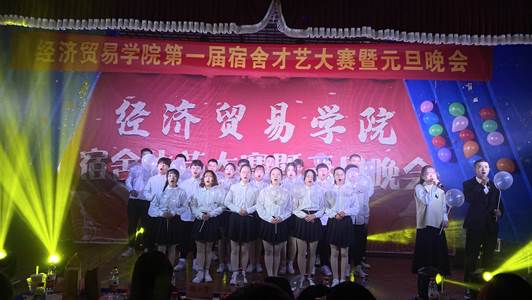 师生同乐辞旧岁,欢歌笑语庆新年。12月29日晚,经济贸易学院第一届宿舍才艺大赛暨元旦晚会在5103教室举行。经济贸易学院党总支书记陶云龙、副书记丁蓉、团总支书记张超及各新生班级辅导员到场观看了晚会,与同学们共迎新年。