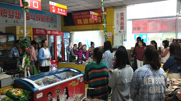 4月23日,行知管理学院连锁经营管理教研室邀请合肥添百福商贸有限责任公司永达超市店长吴小有走进连锁企业门店营运管理阶段实训课堂,实地为学生上了主题为“商品陈列与收银实务”的精彩一课。