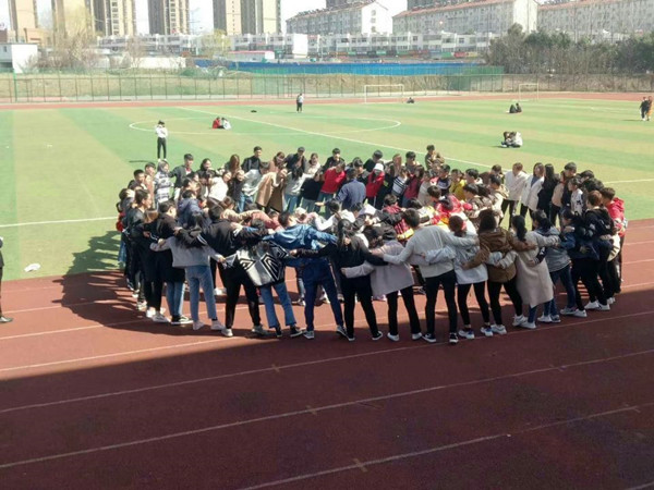 3月11日,在这新春三月,同庆楼集团人力资源中心在我校田径运动场举行组织开展第九届同庆楼“精英班”拓展训练课。活动秉承“拓展思维,积极运动”的主旨,创新授课方式,培养团队意识,提升大学生的思维拓展和思想运动的能力。早上8点,全班同学们准时在操场集合,由勤奋拓展训练的教练带领同学们开始第一项活动,从分队开始,要求每队自己设计队名、口号、队形的排列,同学们积极踊跃,思维开阔,每队都特别的有特点。超音速传递、蒙眼摸瓶,敲击鼓等,在教练带领和指导下,同学们出色地完成一项又一项活动。每一项活动都需要队员与队员之间相互合作,开动脑筋,遵守规则并打破规则,处处体现了拓展思维和团队合作意识的重要性。