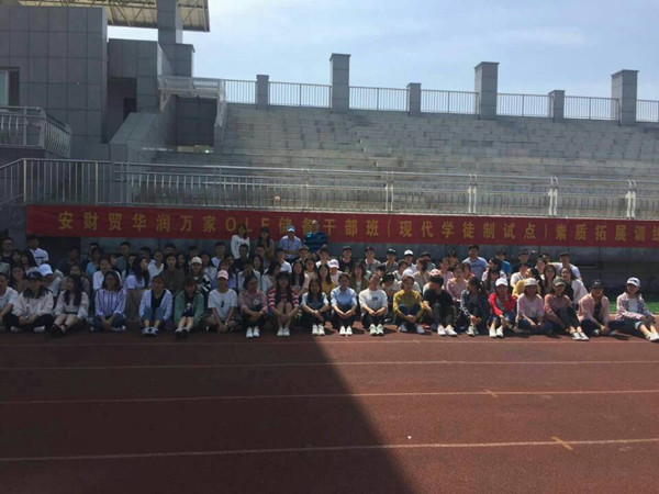 5月10日,行知管理学院有序开展安财贸华润万家OLE储备干部班(现代学徒制试点)素质拓展训练,华润OLE华东区校企合作部经理史潘虹、华润OLE合肥店总经理李朔、行知管理学院副院长刘大俊、连锁专业驻华润万家超市有限公司教师工作站负责人强敏全程指导,2015级华润OLE储备干部班全体同学参与训练。
