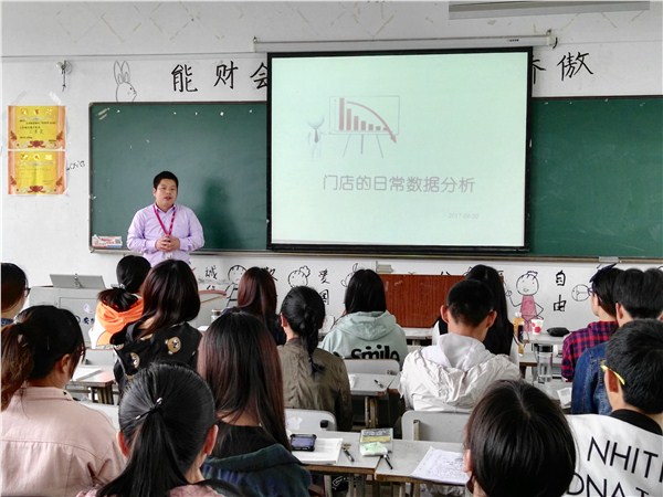 4月20日上午,华润万家OLE合肥万象城店总经理李朔在2015级连锁经营管理专业1501班的教学课堂上,以“连锁门店的日常数据分析”为题,做了一期精彩的专业数据分析。