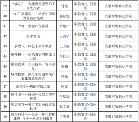 近日,安徽省教育厅公布了2021年安徽省“互联网+”大学生创新创业大赛暨第七届中国国际“互联网+”大学生创新创业大赛安徽赛区省赛获奖名单,我校获得了金奖22项,银奖35项,铜奖51项的优异成绩。金奖数与总获奖数均位列全省高职院校第一。