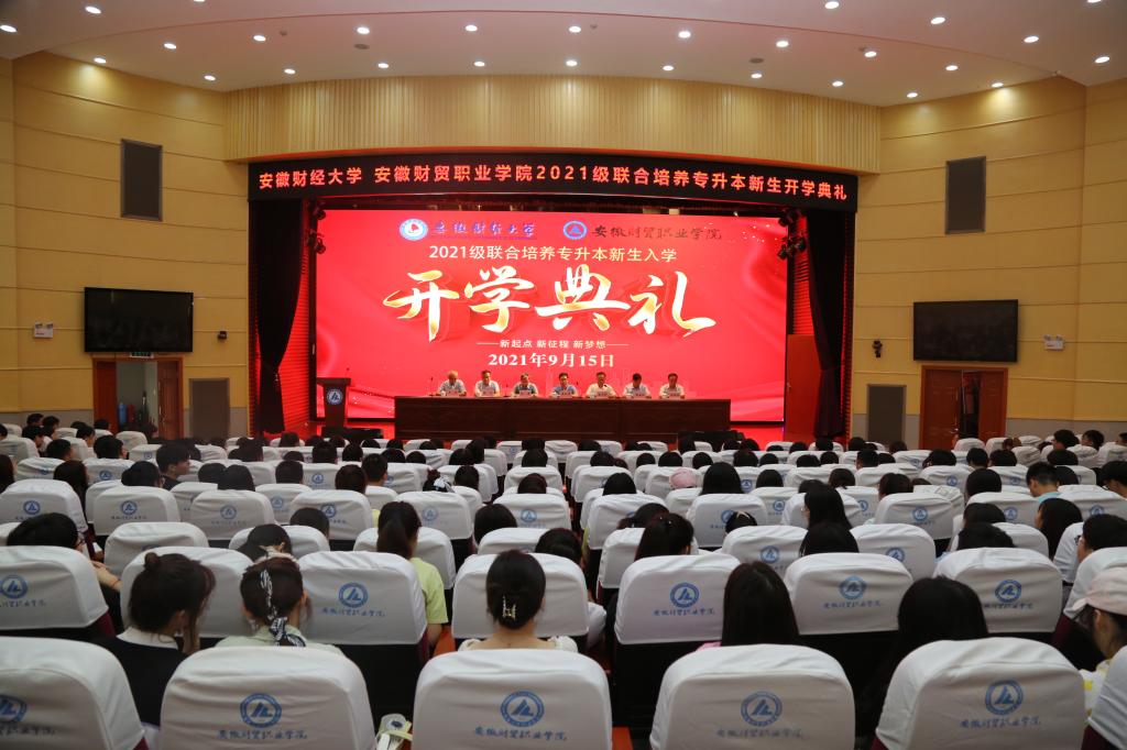 9月15日上午,安徽财经大学与bat365官方网站专升本联合培养2021级新生开学典礼在图书馆报告厅举行。安徽财经大学党委副书记、常务副校长朱红军,安徽财经大学党政办公室、教务处、学生处、财务处、继续教育学院主要负责人出席会议,学校党委书记张志祥主持开学典礼。