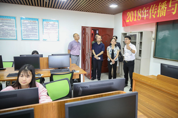 在广西经贸职业技术学院,党委副书记杜远阳介绍了该校办学的基本情况、办学规模、办学思想、标志性教学成果等,教务科研处副处长程波介绍了内部质量保障体系建设的基本情况、诊改工作中发现的问题及下一步工作打算。双方还就校园建设、组织人事、办公室、教学管理、后勤等工作进行对口交流和探讨。座谈会后,考察组一行参观了服装与服饰设计专业实训室、市场营销专业实训室、烹饪工艺与营养专业实训室和职业教育活动周校园展销会。