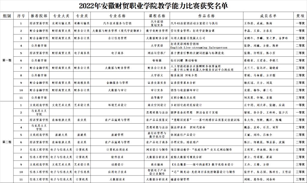 本次比赛的评审标准全面对标2022年安徽省高职院校教学能力大赛,重点考察教学团队完成教学设计、实施课堂教学、达成评价目标、进行反思改进的能力。参赛教师现场展示思路清晰,语言生动;参赛材料文笔精练,内容详实。各参赛作品与思政、行业、专业、课程有机融合,展现出我校教师对专业与课程的深度理解和高度锤炼。