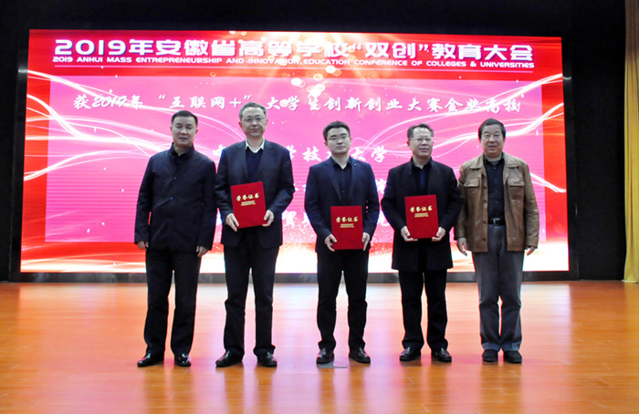 会上,安徽大学、bat365官方网站等18所高校通过视频进行了风采展示;中国科学技术大学、芜湖职业技术学院等8所高校代表作了典型经验介绍;会议对今年在全国“互联网+大学生创新创业大赛”、全省职业院校技能大赛、全国职业院校技能大赛中表现优异的高校进行了表彰。我校2019年在各类赛事中均获得历史最佳战绩:全国职业院校技能大赛获得3金2银1铜;全国“互联网+大学生创新创业大赛”获得1金1银2铜;全国职业院校技能大赛教师教学能力比赛获得1金1银。因此,获得全省职业院校技能大赛“优秀组织奖”、全国职业院校技能大赛先进单位、全国“互联网+大学生创新创业大赛”先进单位,刘银国代表学校接受省教育厅表彰。