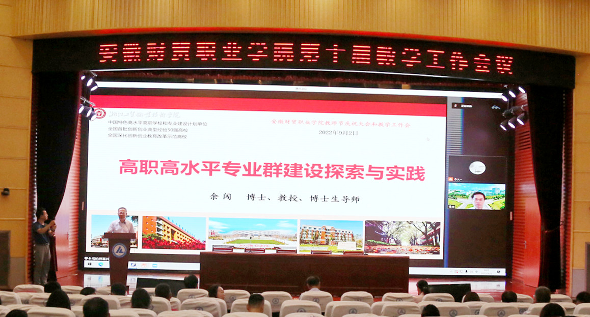 9月2日上午,学校第十届教学工作会议邀请浙江工贸职业技术学院党委副书记、校长余闯教授作题为《高职高水平专业群建设探索与实践》的线上讲座。党委副书记、校长刘银国主持讲座,学校领导、中层干部、专兼职教师参加。
