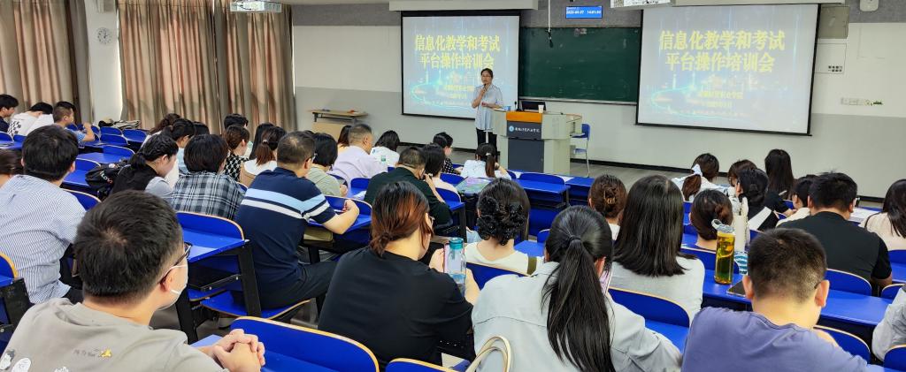 新学期,为促进信息技术与教育教学深度融合,助推新入职教师熟练使用混合式教学方法,提升课堂效率。9月27日,教务处组织召开信息化教学与考试平台操作培训会,全院近三年新入职的专兼职教师参加培训,教务处副处长钟晓鹏主持。