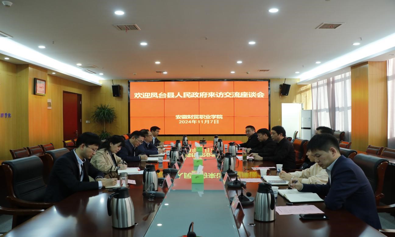 11月7日下午,凤台县人民政府刘涛副县长率队来校洽谈合作办学工作。党委委员、副校长王海龙出席会议,教务处、学生处、财务处、经济贸易学院相关负责人和教师代表参加会议。