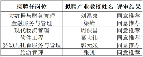 根据《安徽省教育厅安徽省人力资源和社会保障厅关于开展2023年安徽省产业教授选聘工作的通知》(皖教秘高〔2023〕29号)文件精神,依据《安徽省职业院校产业教授选聘办法》(皖教高〔2022〕 14 号)文件要求,经个人申报、各院部和相关职能部门初审、学院学术委员会会议评审,现将学校推荐聘任情况公示如下: