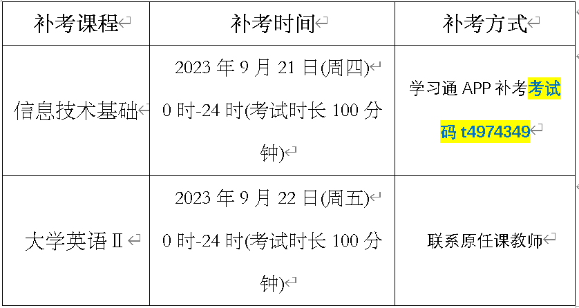 2023年上半年学院《大学英语Ⅱ》和《信息技术基础》两门课程部分班级以证代考,对应的考证科目分别是《高等学校英语应用能力A级(简称大学英语A或英语A级)》和《计算机应用基础》。近日两科目的考试成绩已下发到学院,现对《大学英语Ⅱ》和《信息技术基础》两门课程以证代考班级成绩总评不及格的考生组织补考,具体安排如下: